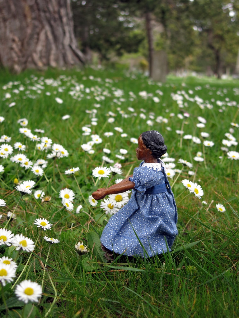 we love daisies…the ox eye daisies grow wild in the hayfields here on the farm but they are not blooming yet. Tuesday looks SO lovely in her blue dress with all those flowers. What a great spring photo.