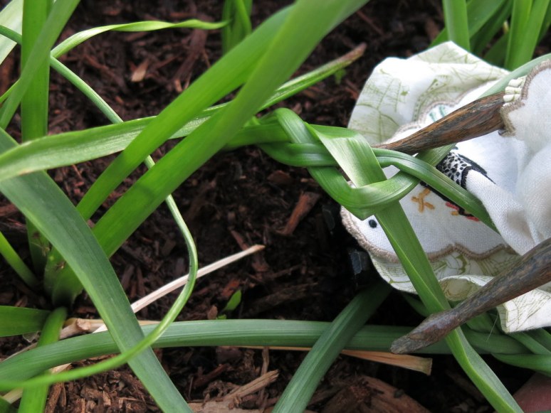 2. We fold over the long stems of Iris leaves but I am going to see if they will braid. Great idea.