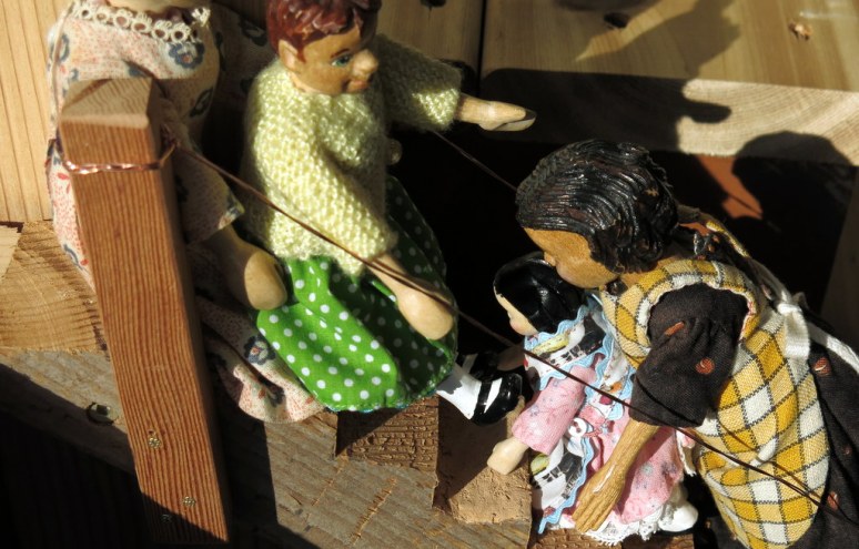 Everyone was excited about the new stairs, and Tansy was well pleased with her carpentering efforts – but she thought the hardest work of the day was trying to point all her sisters in the same direction!