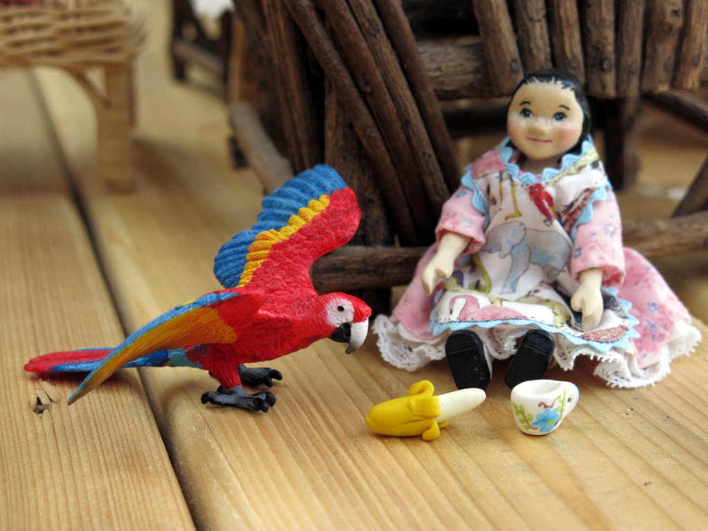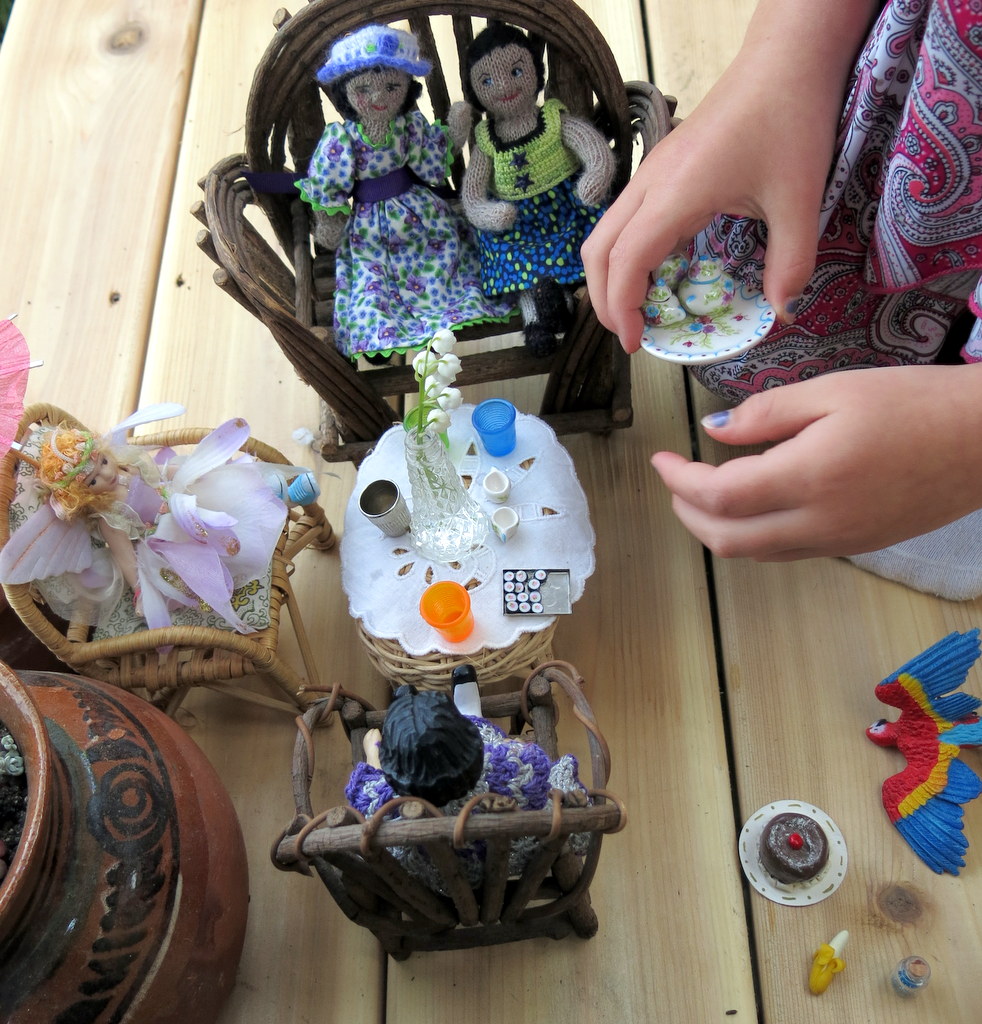 such a fun party for everyone! The Hitty family looks quite comfy and relaxed on the porch. And how nice of Gilly to see that the Parrot is well cared for. A very good day for all and especially the small human