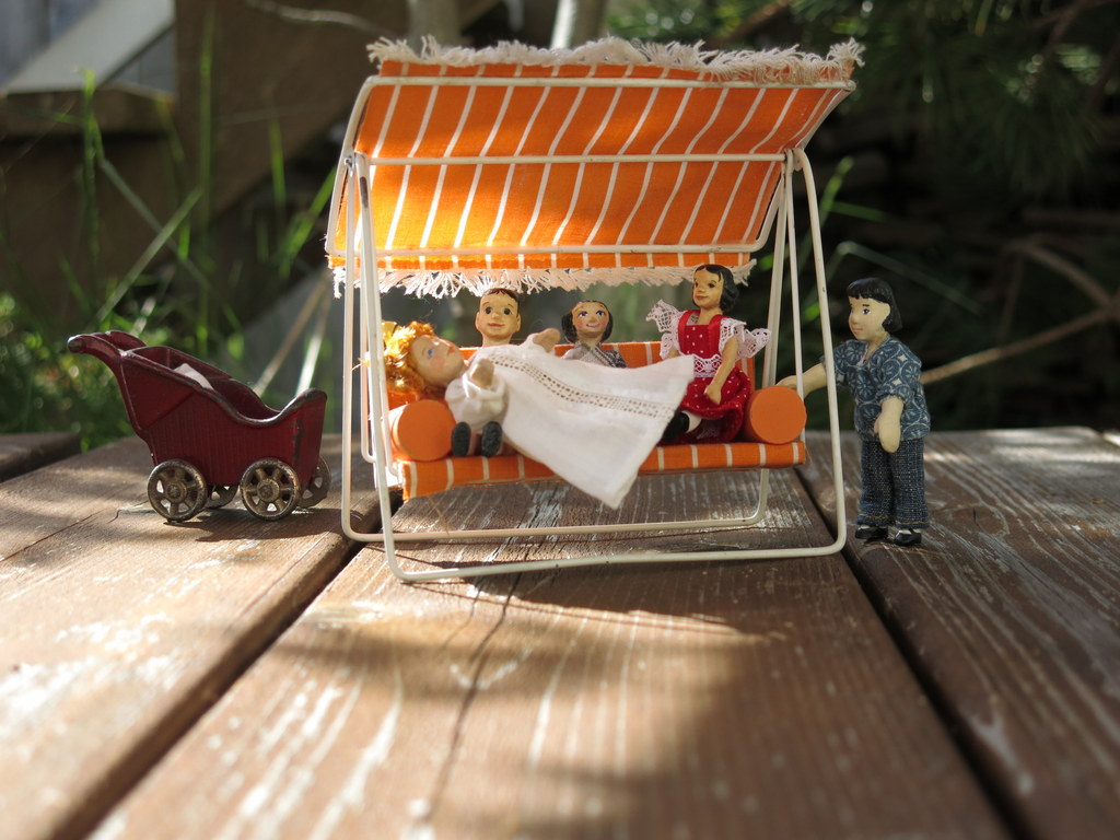 • The porch swing appeared during a clean-up effort, it must have been in a box for 25 years, the tinies are very glad to have it, and I confess both Hittys and humans are a little envious!