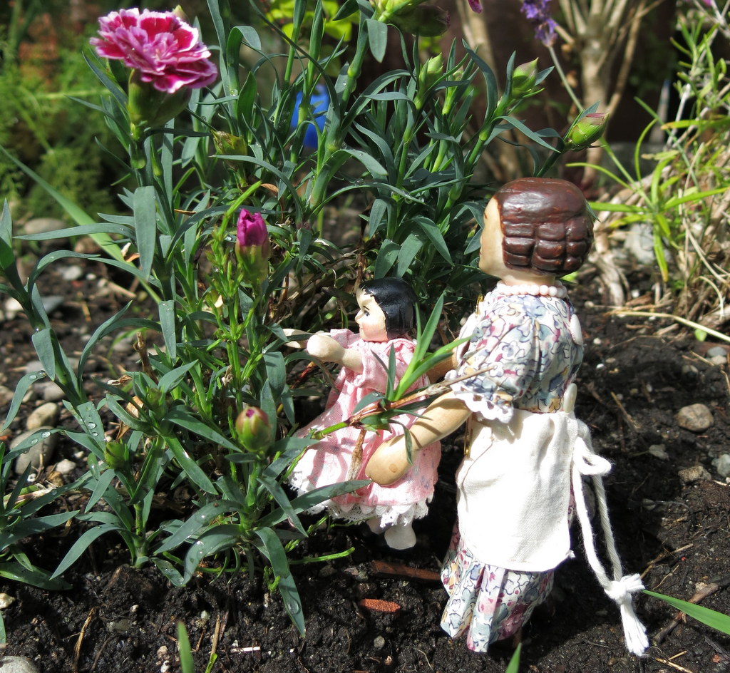 Darling girls among the beautiful flowers. I must say I am rather partial to the lavender! But Gilly sure looks adorable in the frilly pinks. What a lovely stroll in the garden, thank you.