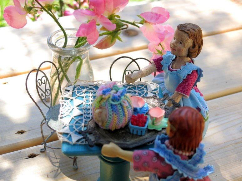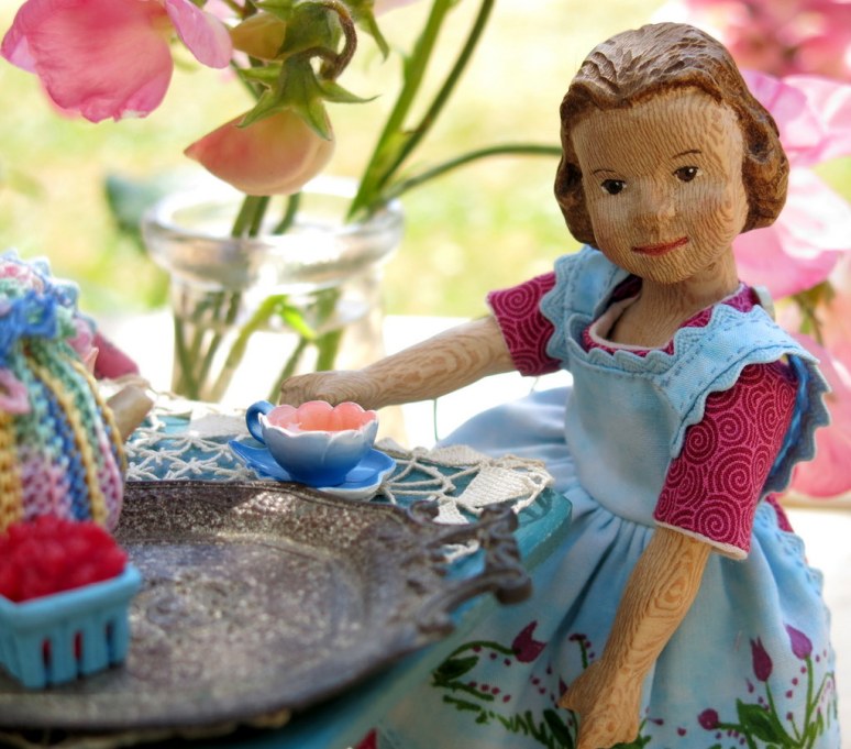 1. WOW! How do you come up with such unique ideas…flower gloves? The entire tea party was adorable…from that sweet and colorful tea cozy to those beautiful cups and saucers. Of course, the sweetest by far are those wonderful and much loved Hittys, Aurelia and Arianell.