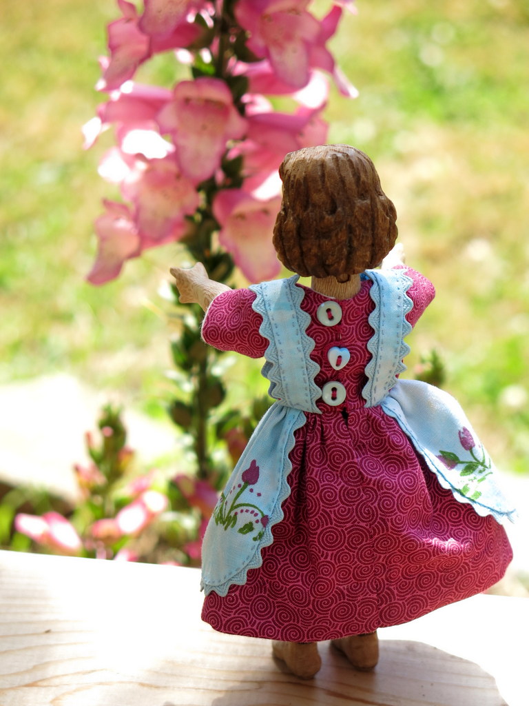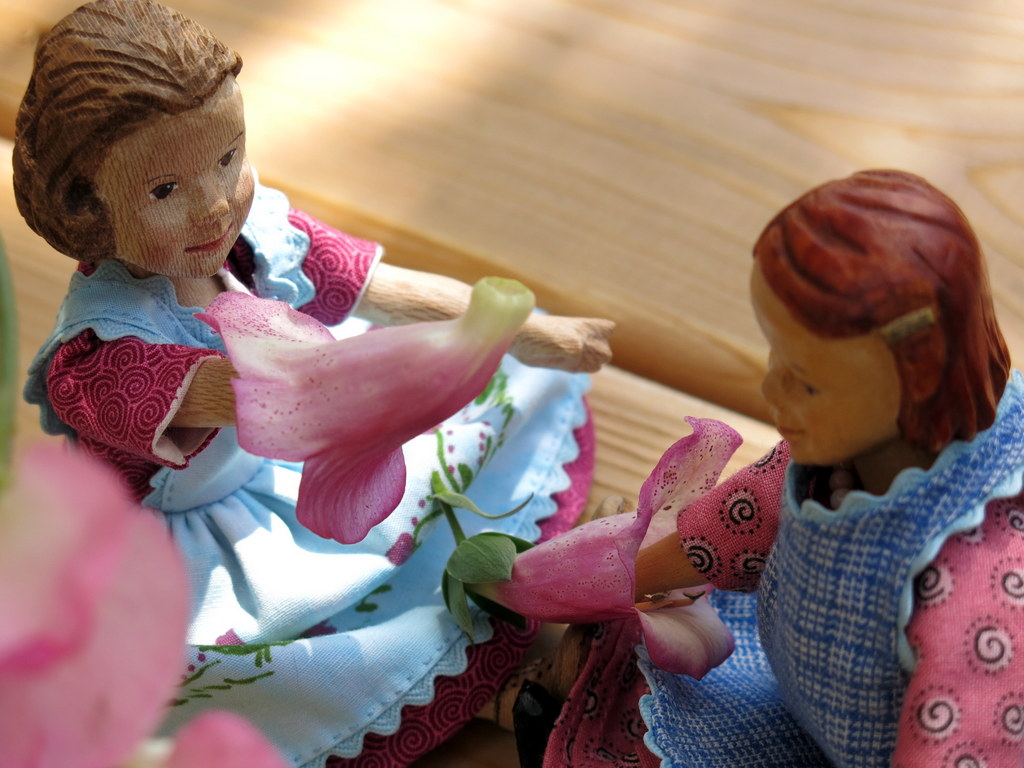 2. Beautiful Sweet Peas. Foxgloves are a favorite flower in Peppers household. Along with being able to wear them as gloves they make nice hats. Love your new pinafores and those beautiful fluted teacups.