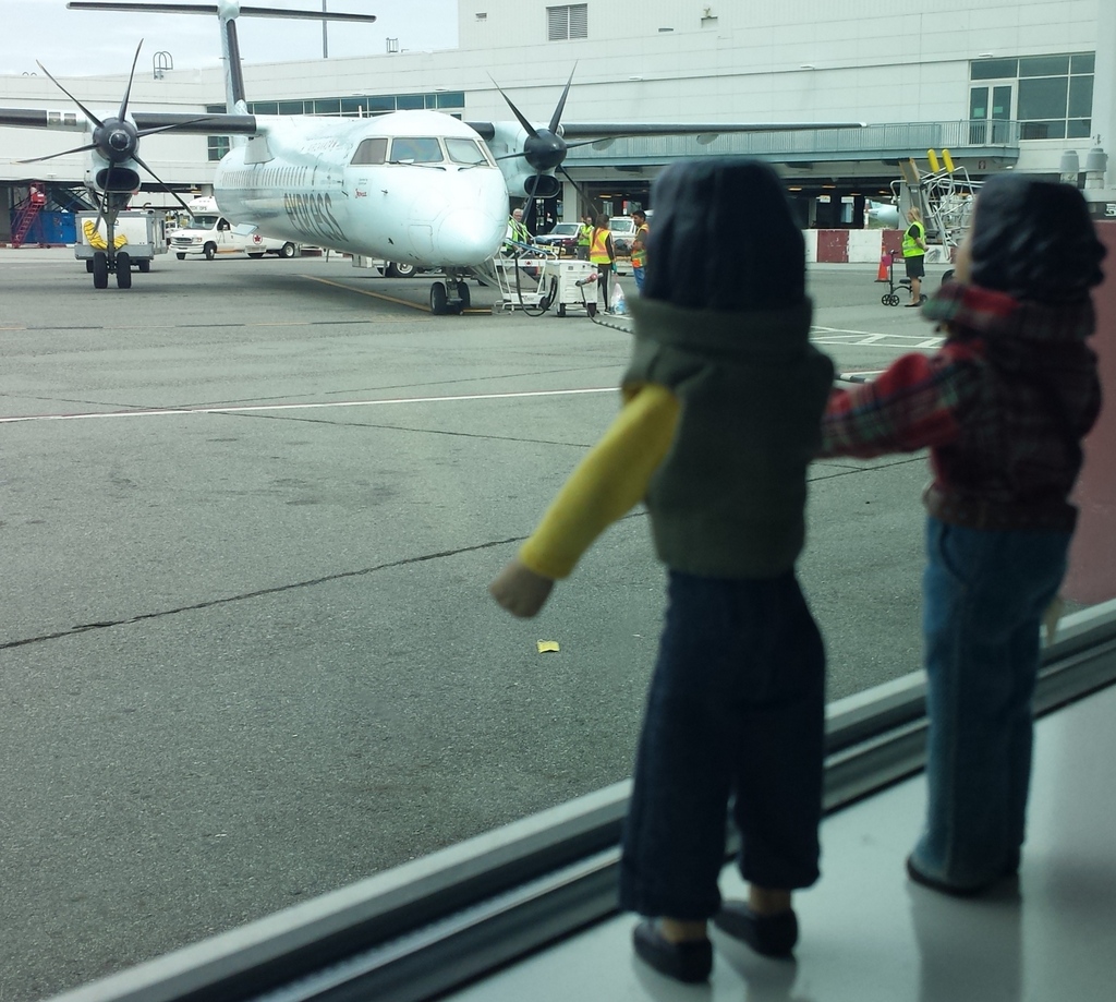 Tansy and the Butternut girl waited patiently for their flight to be called in Victoria…