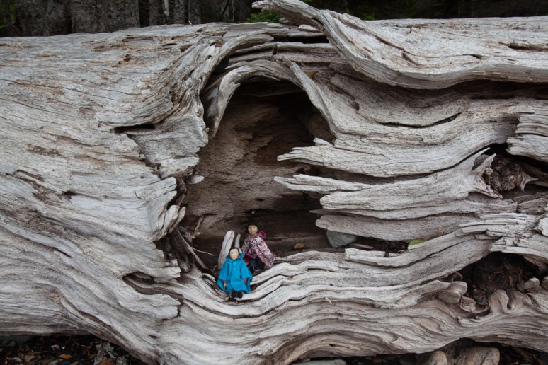 2. Let’s keep those earthquakes plates calm. The driftwood cave is gorgeous. Love its texture. The girls are having a wonderful time exploring and finding that cache of abalone shells. (my favorite)