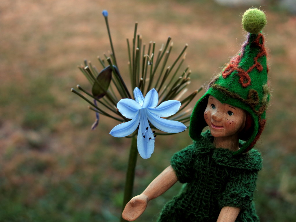 • Hitty Carrot Soup is full of fun and mischief…I suppose the pixie Hat and shoes exacerbate her temperament! Drat the deer, they had left the Agapanthus alone for so long and then nip, nip, nip, all gone but one little beautiful blossom!