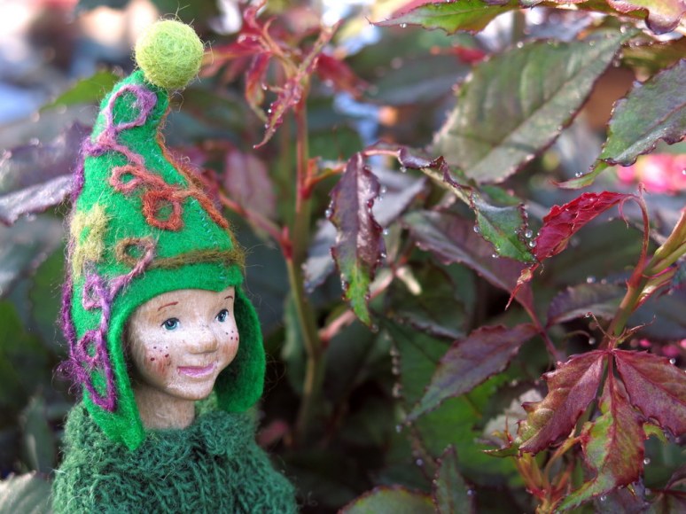 Carrot Soup is such a charmer….I love the vibrancy of all of the colors in this post (as in most of your posts!). I trust you will have some late blooms on your rose bush. Some of ours have been devastated by insects, and others are trying to survive the drought (and earlier deluges we were getting), despite the nearly daily waterings. Carrot Soup’s elfin hat and shoes are so very cute and vibrant. Thank you again for such (nearly daily) cheer.