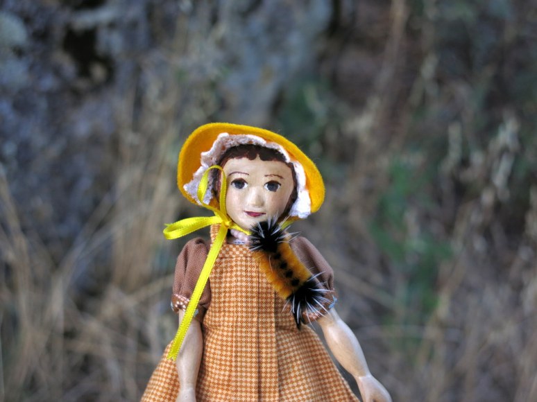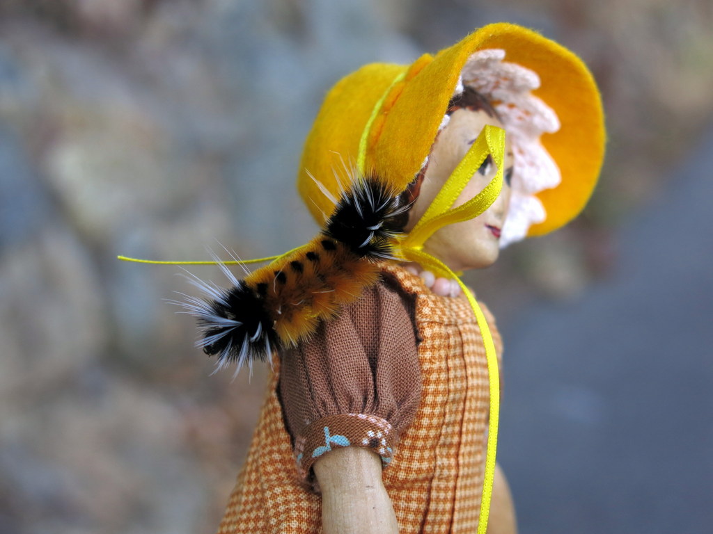 I don’t know what fascinates me more…seeing Constance persuading that Woolly to position itself on her hat (by the way it looks stunning) or seeing a Woolly Caterpillar with white spikes. The ones we have here in Pennsylvania don’t sport those spikes.