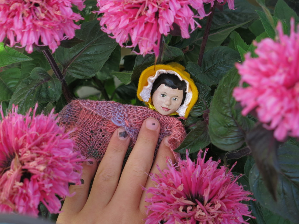 Lilac was exhausted and her arm kept falling off so she had a rest in the bee balm.