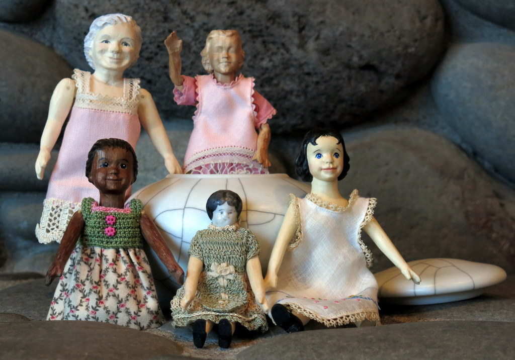 Janet Cordell carved the little girl waving, and tc Vollum made the Koa and Holly girls on either side of Mudlark.