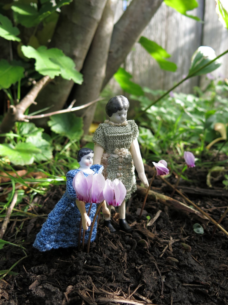 • The China heads are a bit funny – they have rickety boots and are a bit top-heavy, but are happy to totter around the cupboard, house and garden. They have become very fond of Jane, who plies them with yummy delights!