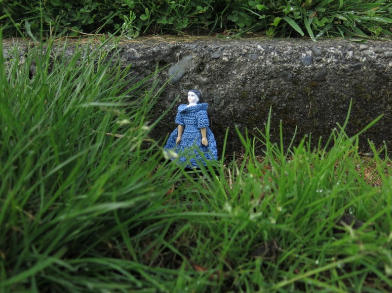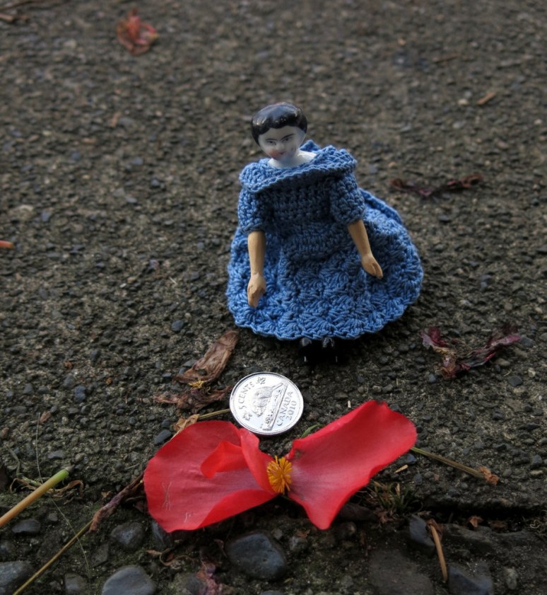 I just noticed her little boots with heels! What a great walk in the gutter!! we have not gutters out here in the country ..just some very weedy ditches that poor little dolls can not walk thru. Hope that Jane can create something quite tasty with Guttersnipe;s find!