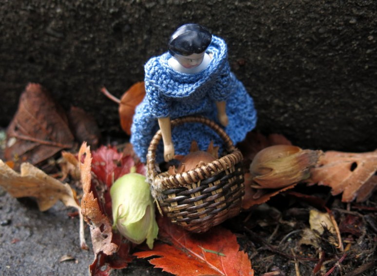 Gutter snipe is a little teetery tottery on her spiky little heels, but she refuses to take them off! Jane is super resourceful and will find something involving the nice little hazelnuts, I am sure of it!