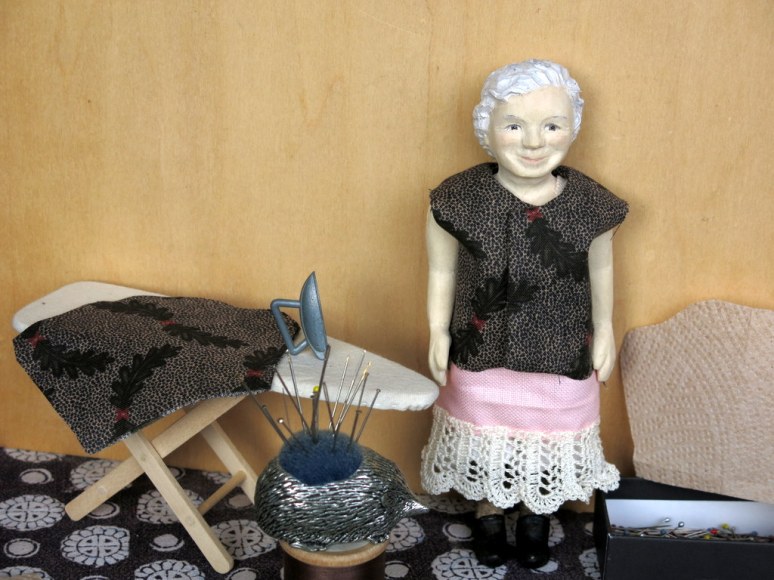 The slip was hastily cobbled together on the last day of our carving workshop – even freshly carved and painted, Mormor refused to be photographed in her altogether! It looked so nice with the addition of the special lace that I secured the stitches and made the slip into her special under-garment.