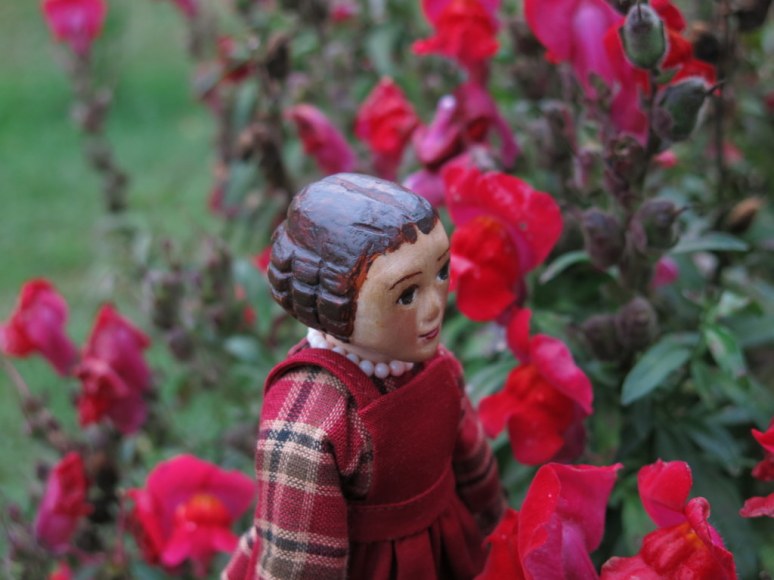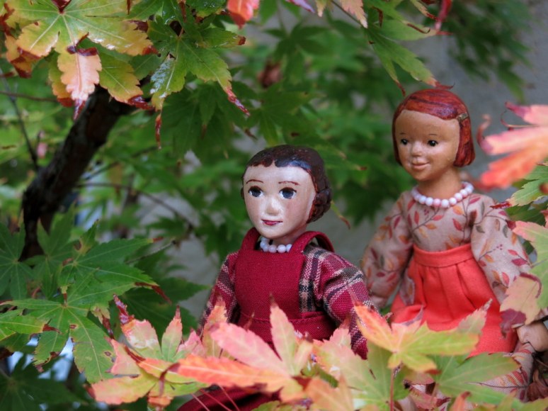 Thanks to our Hitty friend who sent us the wonderful package of perfectly autumn Hitty clothing, including Aurelia and Constance’s aprons and Burgundy and Gold dresses.