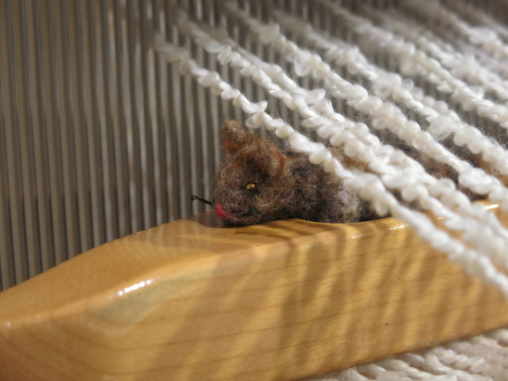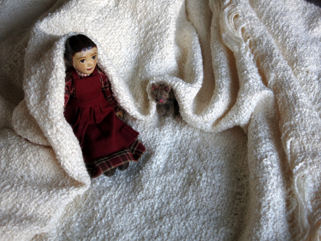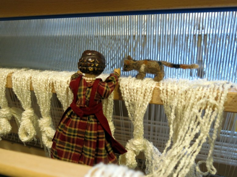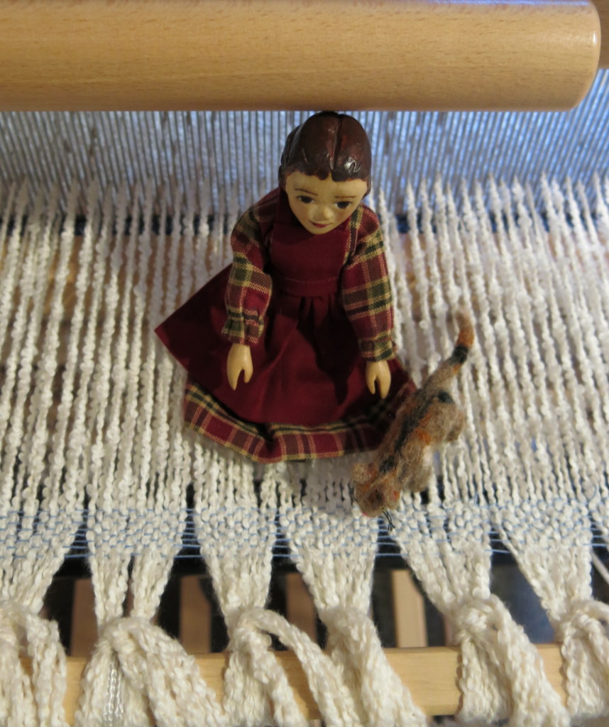 The blanket sure looks warm and soft! Constance should be proud of her work…and the cat too! Not many woodens get to weave. Very nice work!