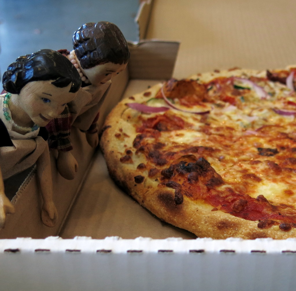It was fun (and a little confusing) knitting that blanket – but we really like the result! Pizza was wood-fired, and very delicious (and hot!).