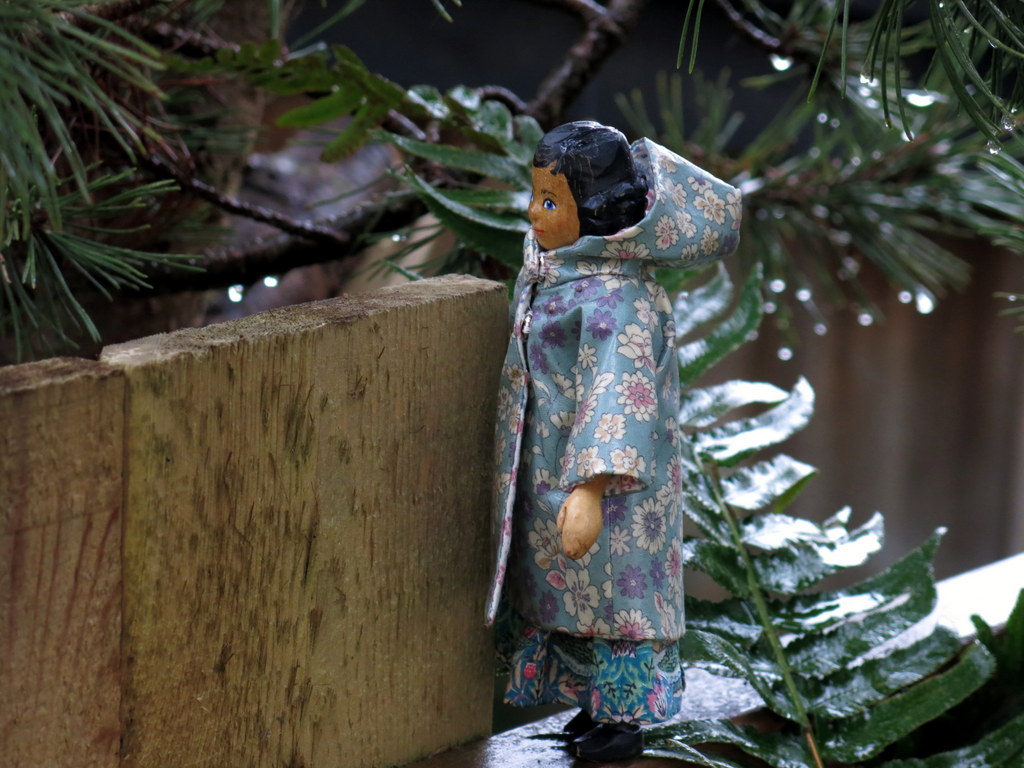 • I used “Pauline’s Felt Raincoat” in the Hittygirls pattern files, with some adaptions…I did make a pattern for the hood, I will try and send it to you…Rose was occupying the magical craft basket, and the socks were for six-year-old feet, so they didn’t take very long (and she had a bit of help!)