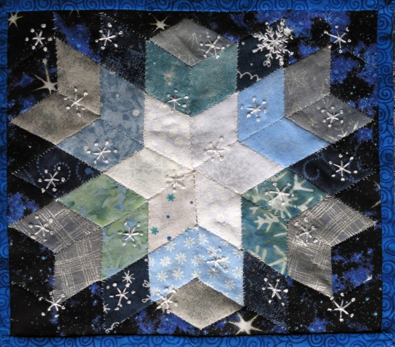 • Thanks, so much – kind words mean a lot to me, especially from another quilter! I love winter dark when the sky is so clear and the stars so sharp! Making this quilt was very satisfying.