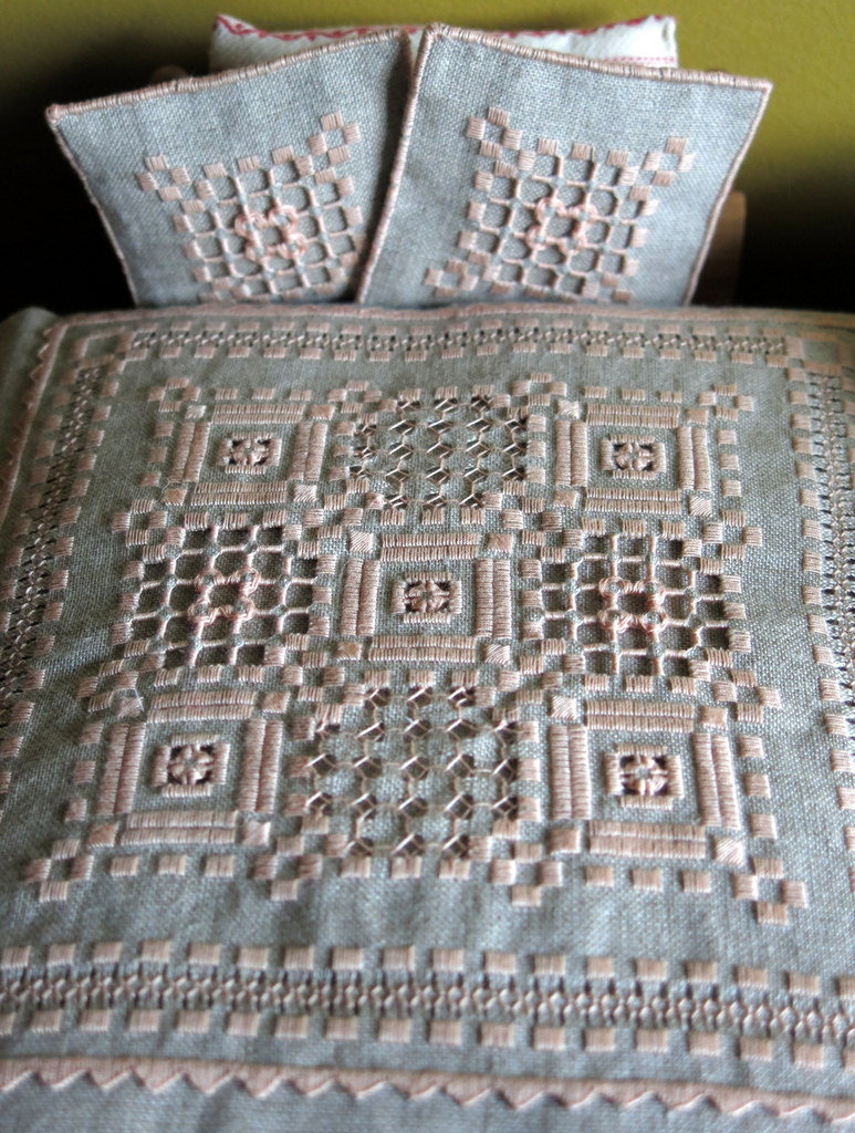 A kind, generous, and talented Hitty friend has sent Mormor new pillow shams that match her beautiful Hardangersøm duvet…
