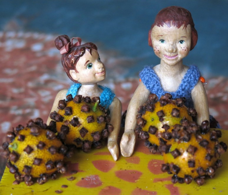 Min and Carrot soup are adorable…their smiles are contagious. The kumquats make wonderful hitty sized oranges and the aroma of orange and cloves is so very Christmas. Thanks for this fun idea. You have a wonderful creative eye.
