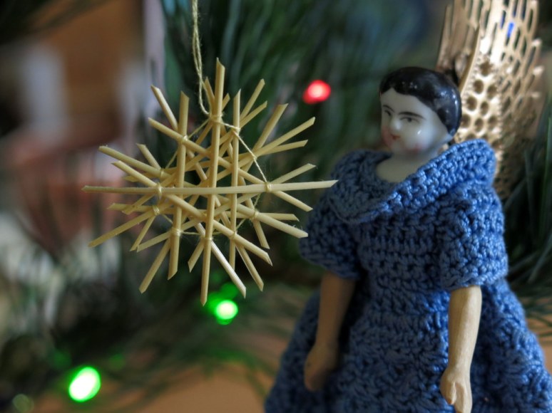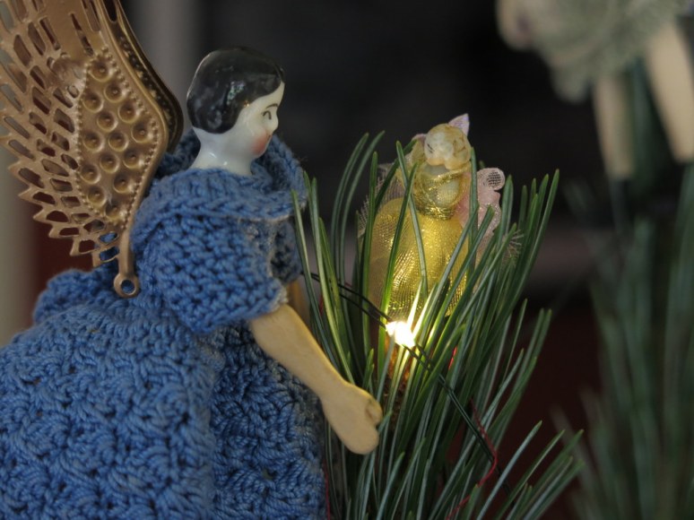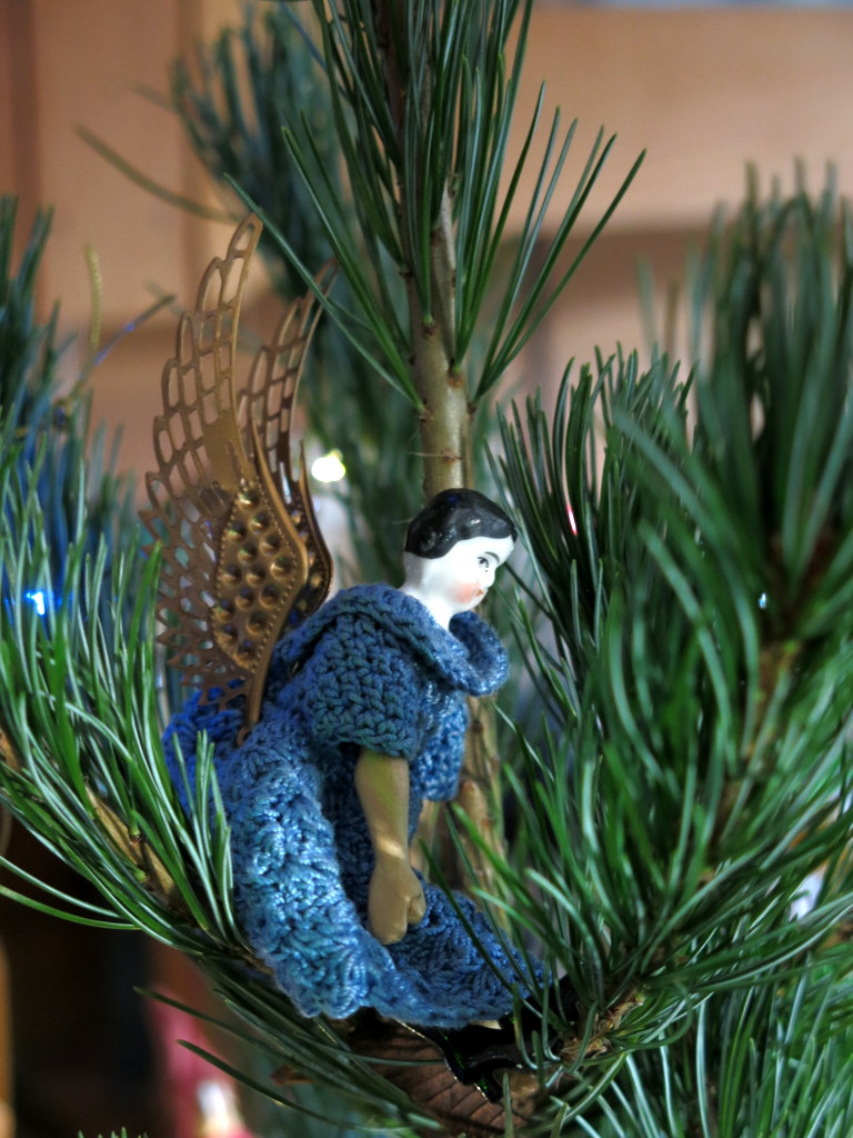 After a century and a half of being lost, forgotten and buried in river mud, Mudlark was extremely gratified to be the Christmas Tree Angel! The humans have had a Hitty-angel for the last few years, but their new tiny tree could only support a tiny doll.