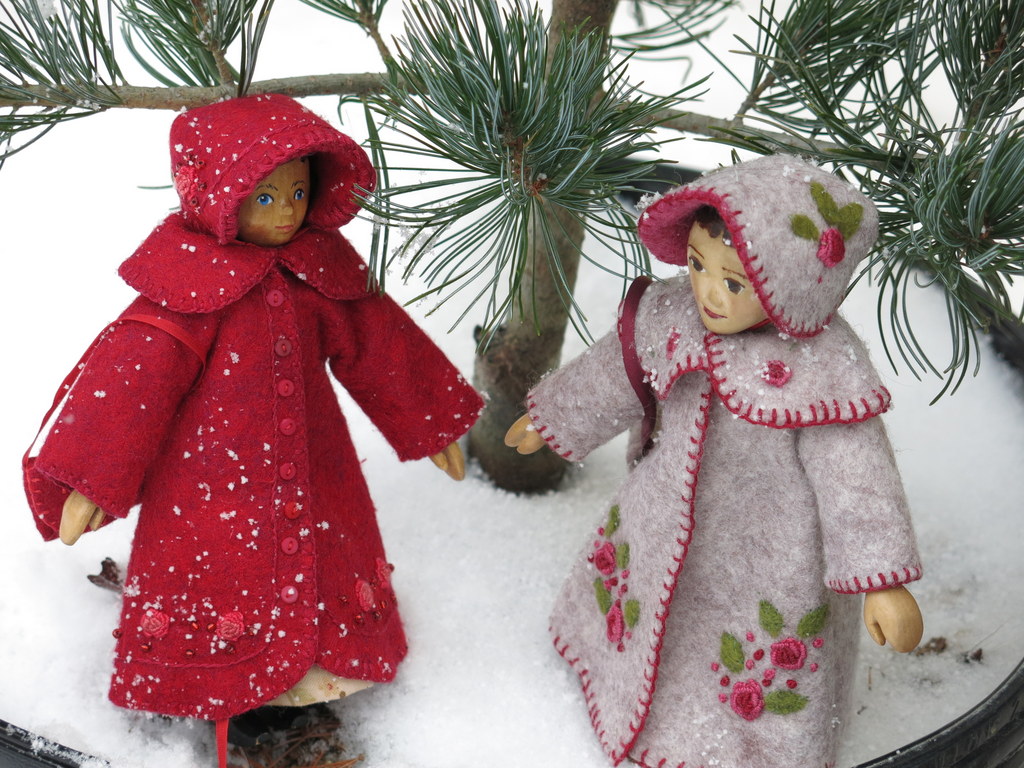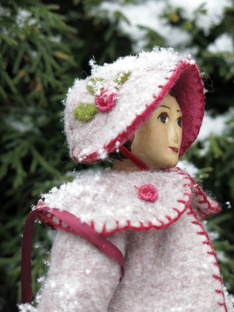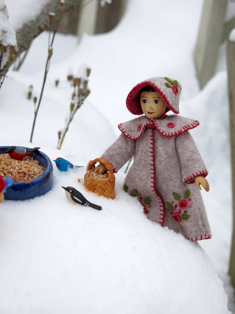 2. It’s hard to be concise with comments on this story. The girl’s coats are so Hitty sweet…unique and positively lovely… those wee little birds and the basket of bird seed, is truly wonderful. Birds need extra care on snowy days. Quimper human, you are a born story teller…your way with a camera and that wonderful caring imagination of yours, spreads so much joy, to all of us who have the good fortune of finding this blog.