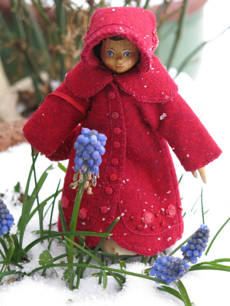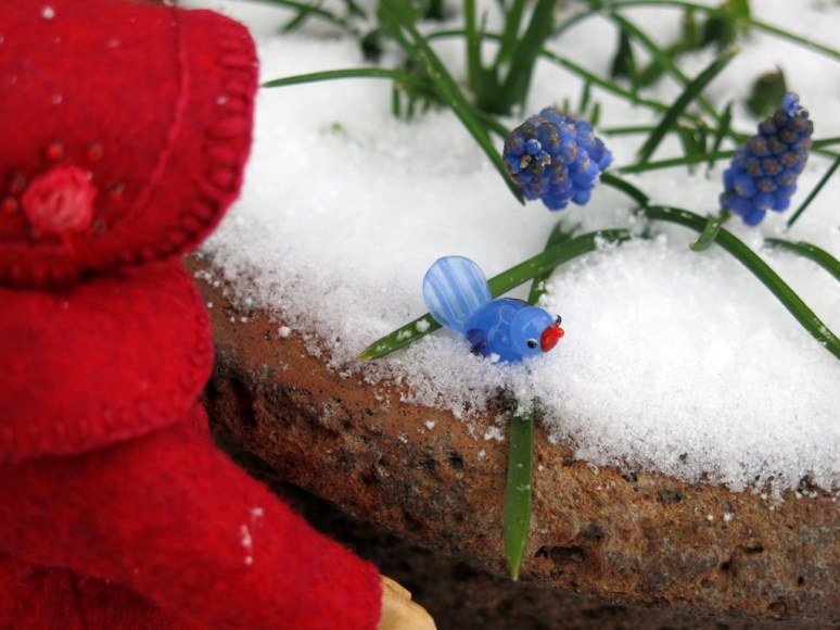 3. The girls are so thoughtful. and kind to look after the hungry birds. Rose’ s shoulder bag is a lovely touch! I am especially fond of grape hyacinths and they look so pretty in the snow.