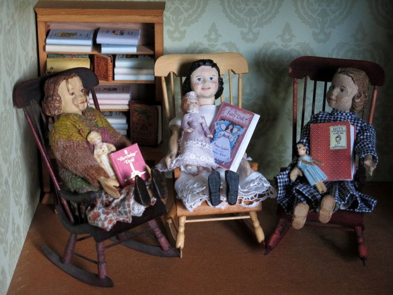 The doll’s dolls enjoy being read to…