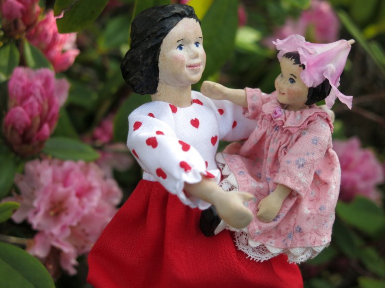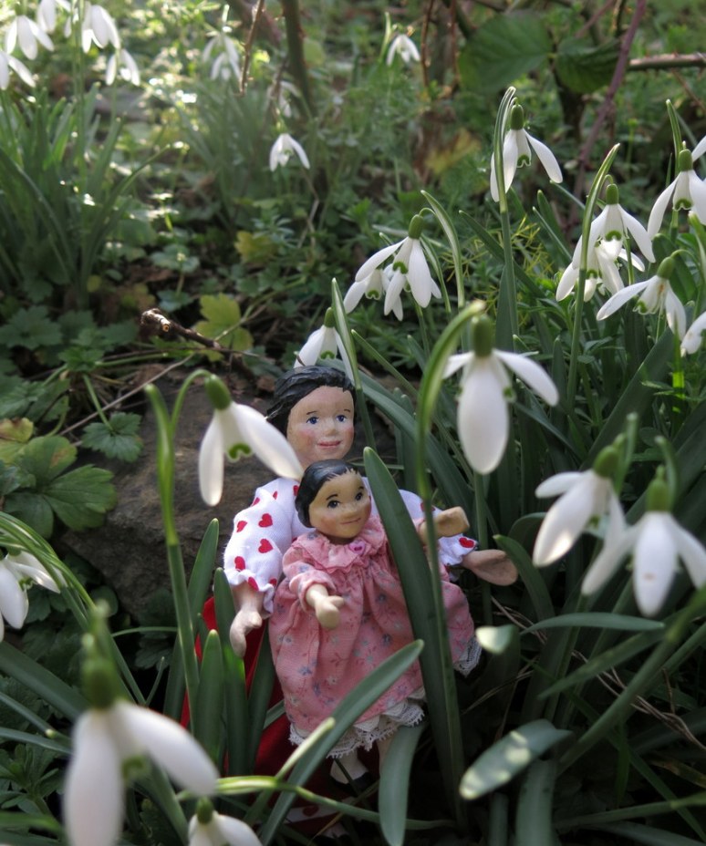 • It never gets too cold here, and rarely snows, but the everlastingly grey skies and pouring rain can wear on the most optimistic Hitty and human…we are overjoyed by the reappearance of our garden flowers. We think it would be hard for Gilly to get much cuter than when she wears a pink flower bonnet!