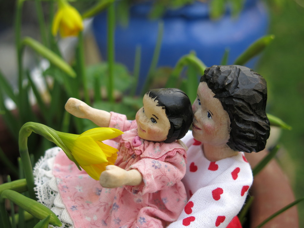 We love spring sunshine, garden flowers, and affectionate sisters!