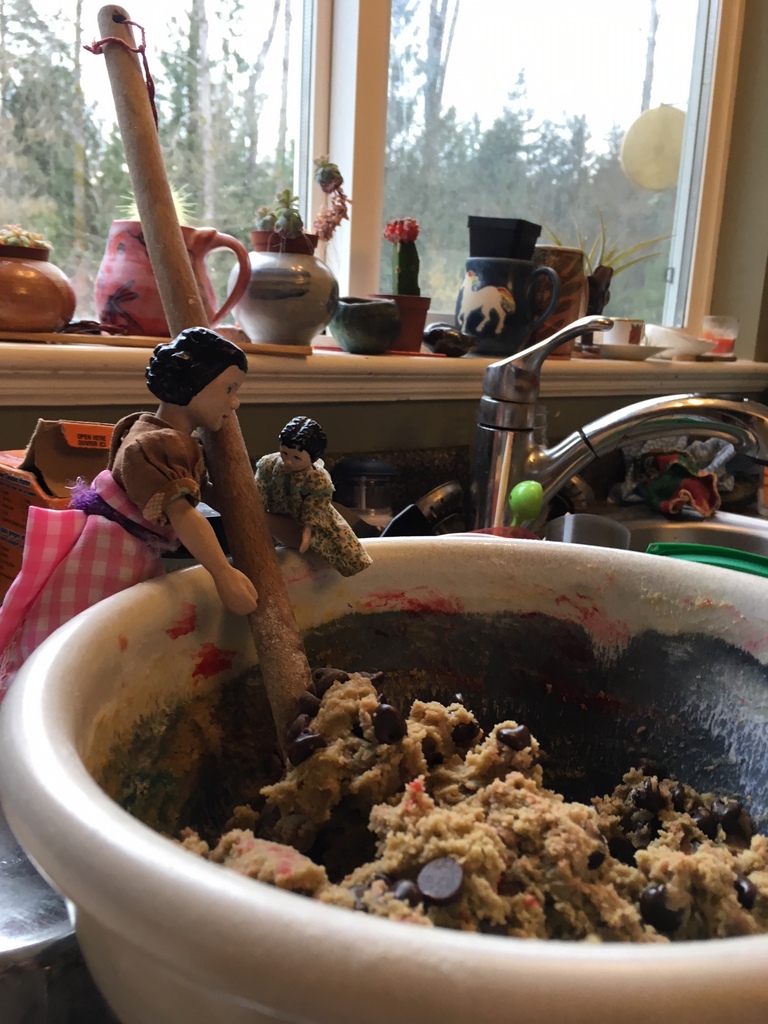Anthea’s hands needed washing after forming the cookies too! Fortunately there were no further sink mishaps!