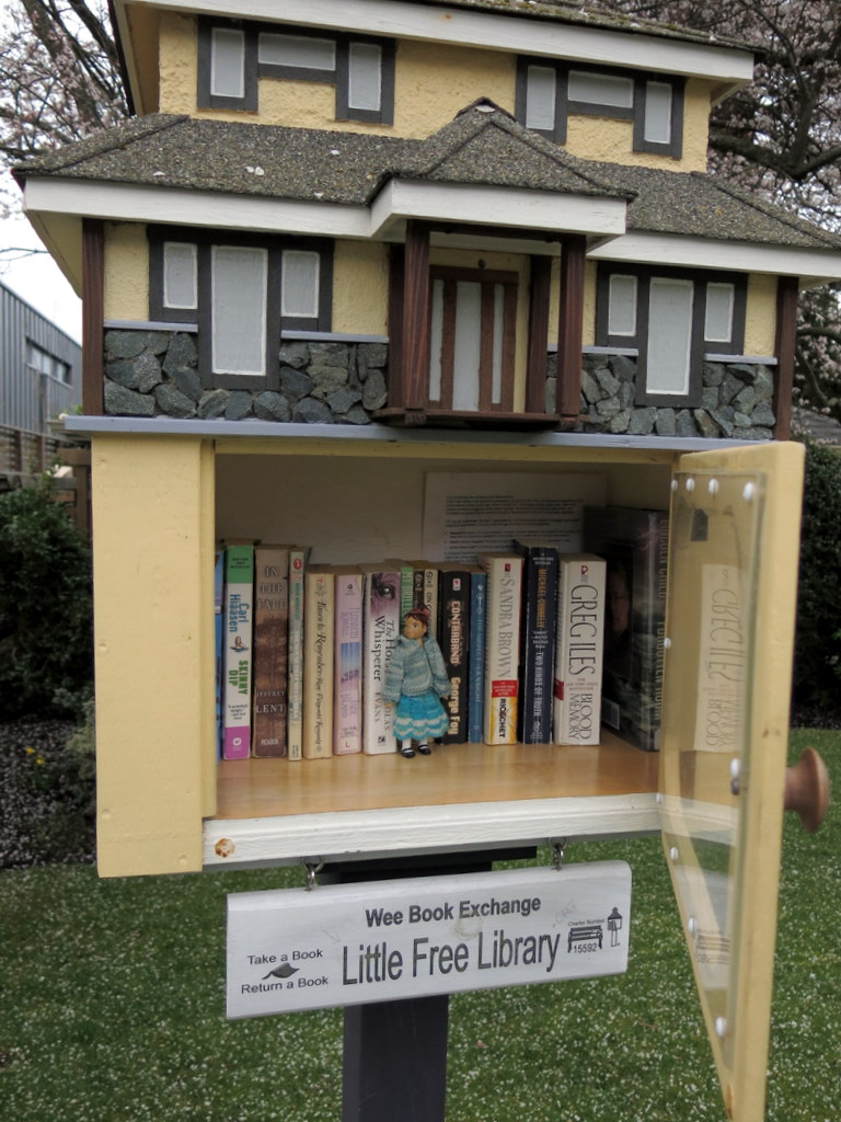 …she checked out all the “Little Free Library” boxes, in the neighbourhood…