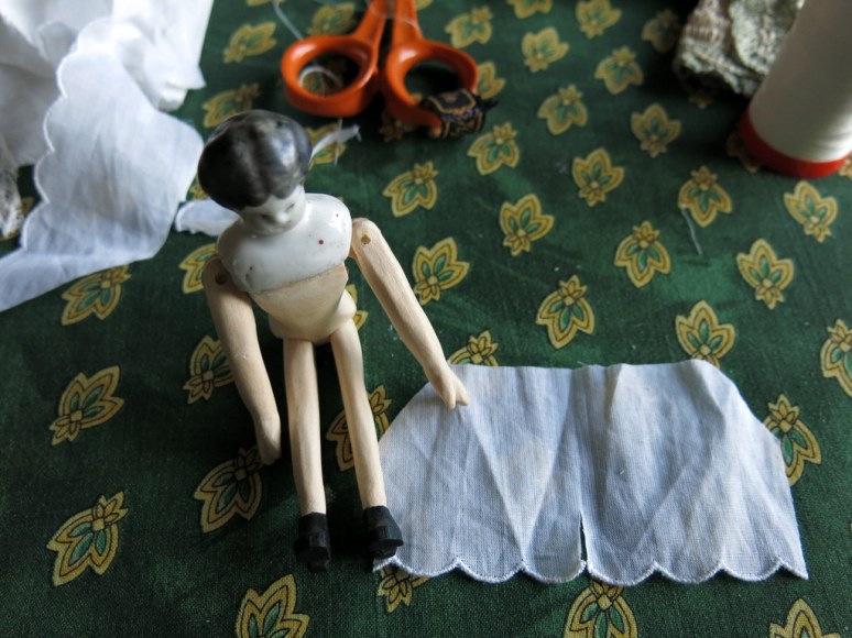 Mudlark was extremely happy with her new smalls, but Guttersnipe stamped her foot until I took her scrap of lace and sewed her a pair as well.