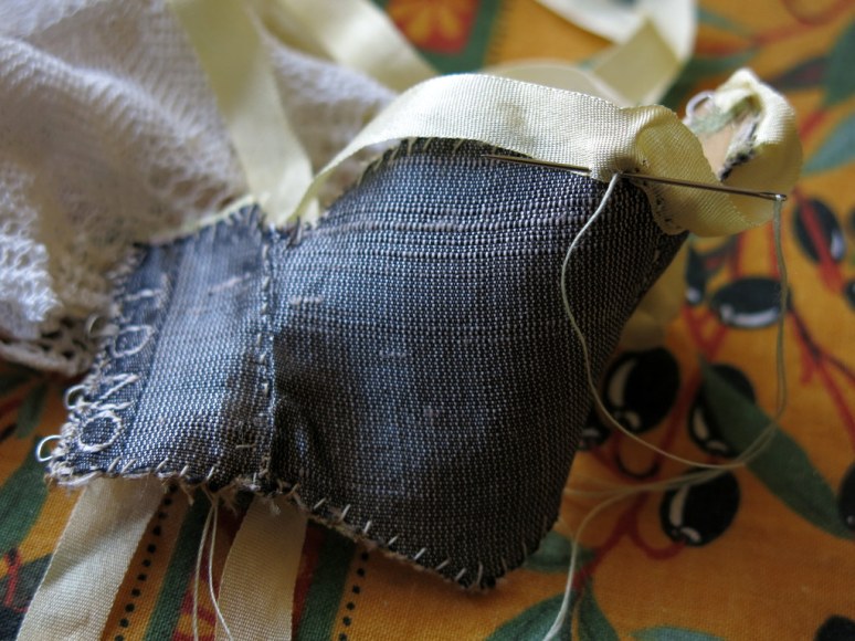 • Thank you very much, katechiconi. The outfit is destined for a very elegant lady of a certain age, with powdered hair and an upright stance…Perhaps a headdress with lappets is just the finishing touch, but I will have to see what is in my lace scrap stash!