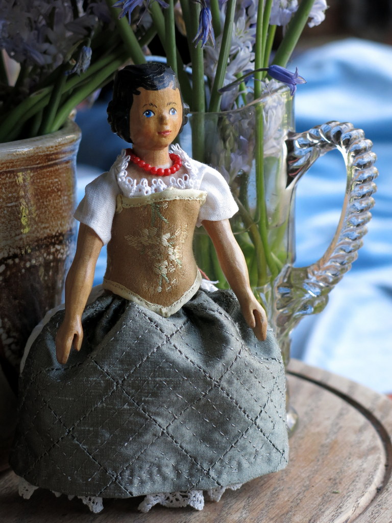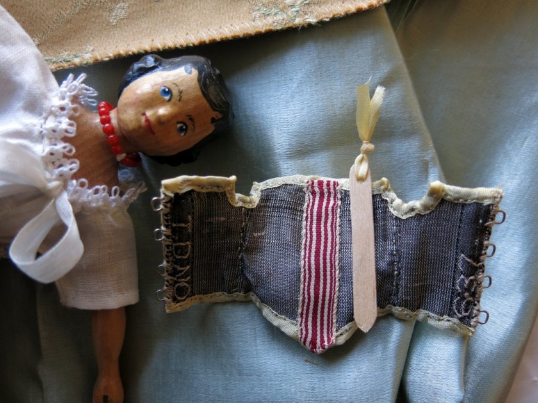 4. I rather like the lace of the petticoat showing, and I’m happy to see the corset in finished position, but I can understand how she will want the outside part over it. This was amazing to see. I never know how fingers can make those little bits, but your work is beautiful.