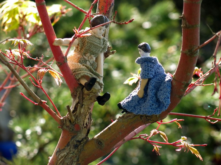 This is their favourite vantage point – the garden always looks great from up in the Coral Bark maple tree!!