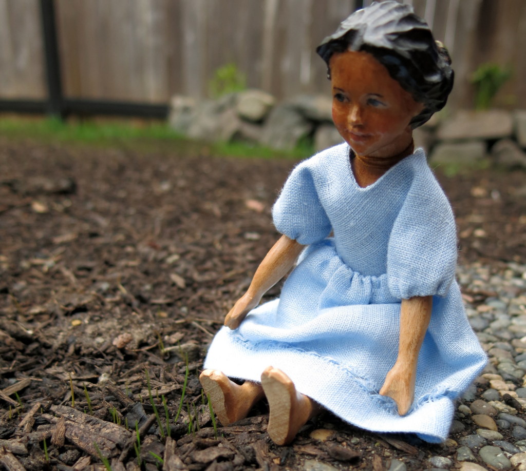 Thank you very much, the tree is about 25 years old, but it is usually seen as a bush, we’ve just trimmed it that way. It’s called California Lilac or Ceanothus Victoria (coincidentally), and it isn’t too too tall, though delightfully big to a Hitty!
