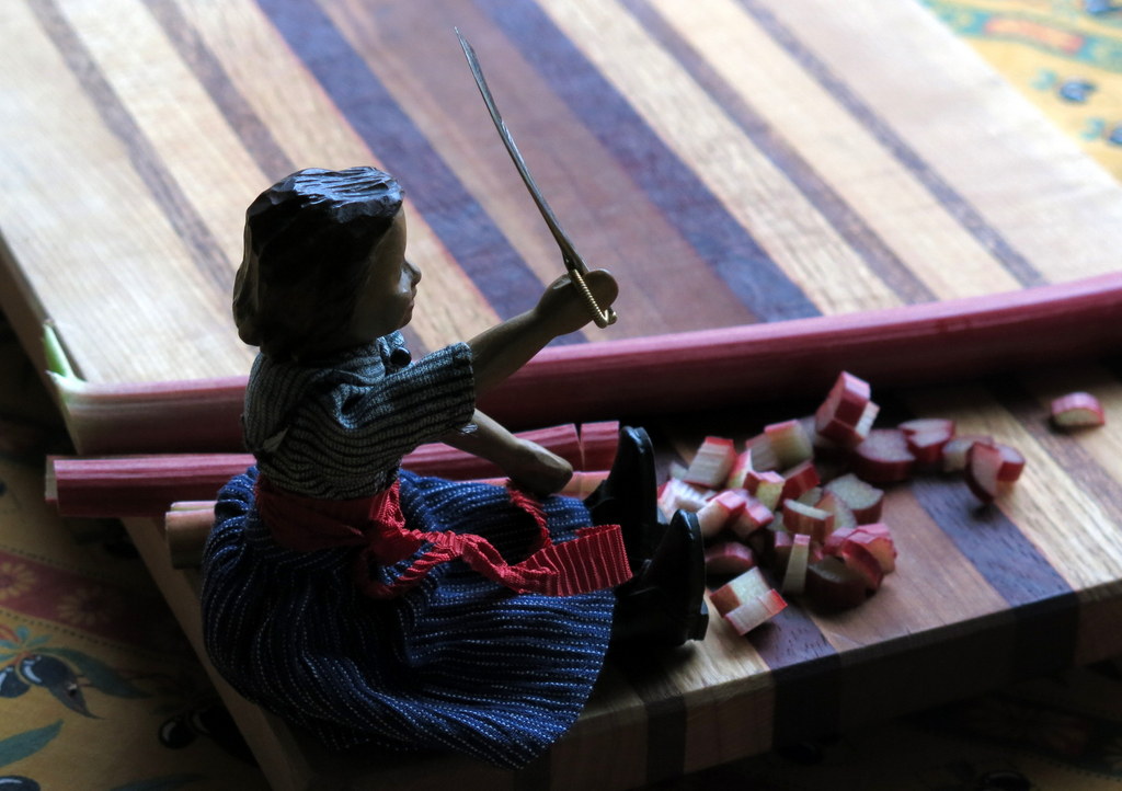Cut Rhubarb into chunks with your sharpest cutlass.