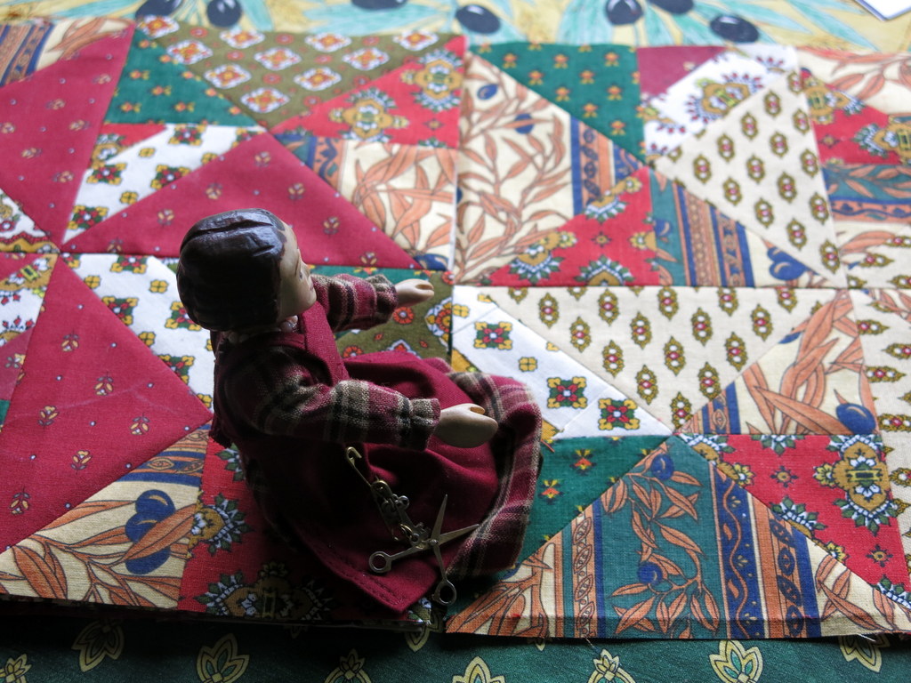 Our only problem is scaling up fro our usual Hitty-sized quilt! The good thing about this human quilt is that we are only puzzling our one block at a time, so it isn’t too bad!