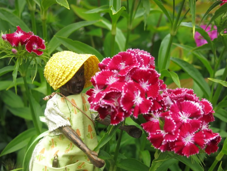 How generous of the Quimper Hittys and their human. Lovely photos of lovely flowers and good hearted wooden girls. thank you for the smiles.