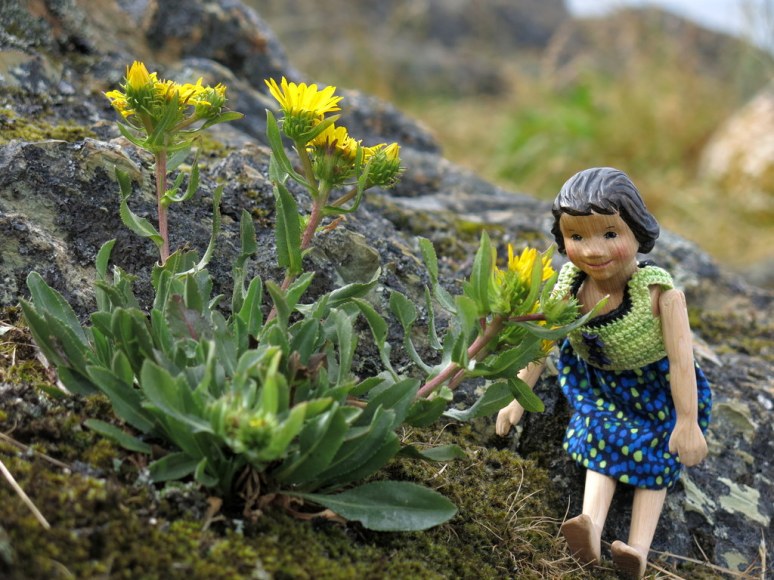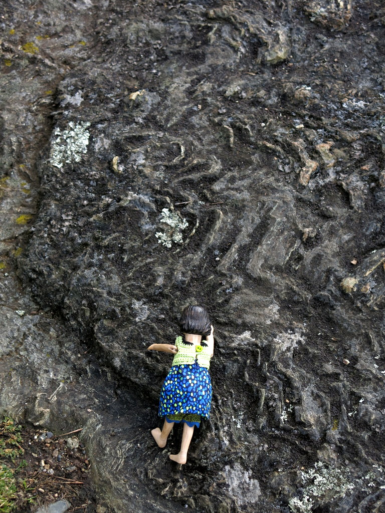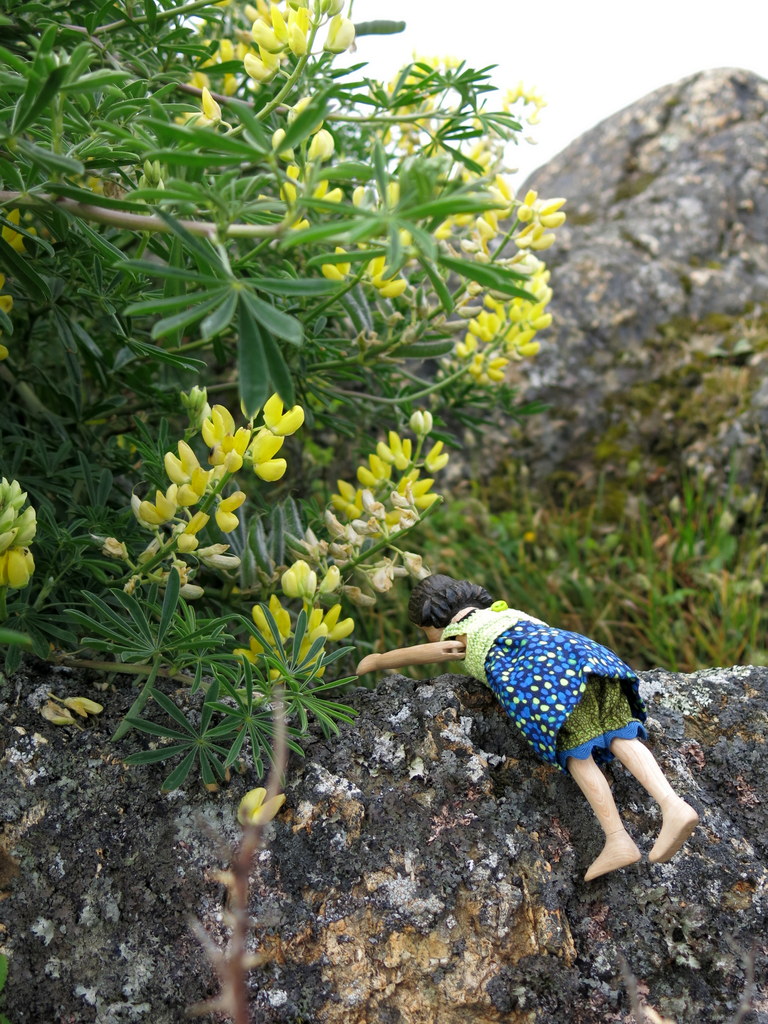 …climbing over the zigzag rocks…past tiny yellow lichens – see?