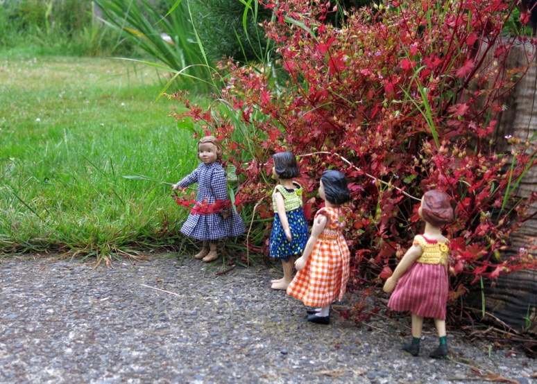 2. Your Hittys are dressed in such lively colors. Despite the gloom of the weather, the pretty berries accompanied by bright colored Hittys brings joy to my eyes.