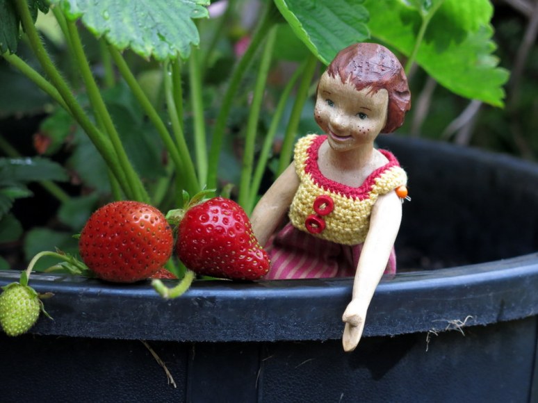 The Strawberry pot has some beautiful ripening berries, and Carrot Soup found one perfect one!!!