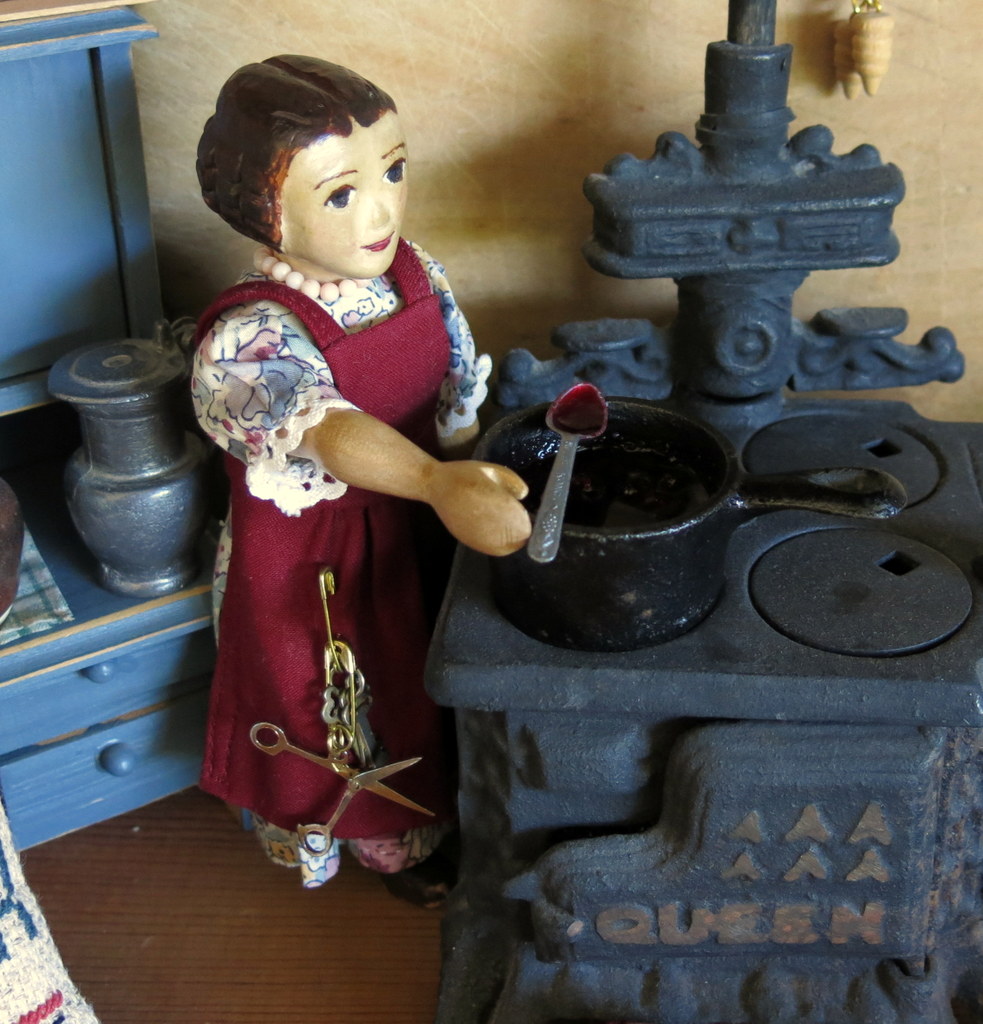 The Quimper Hittys never cease to amaze me. Those hitty sized jelly jars are astonishing. Constance is a pro in the kitchen.