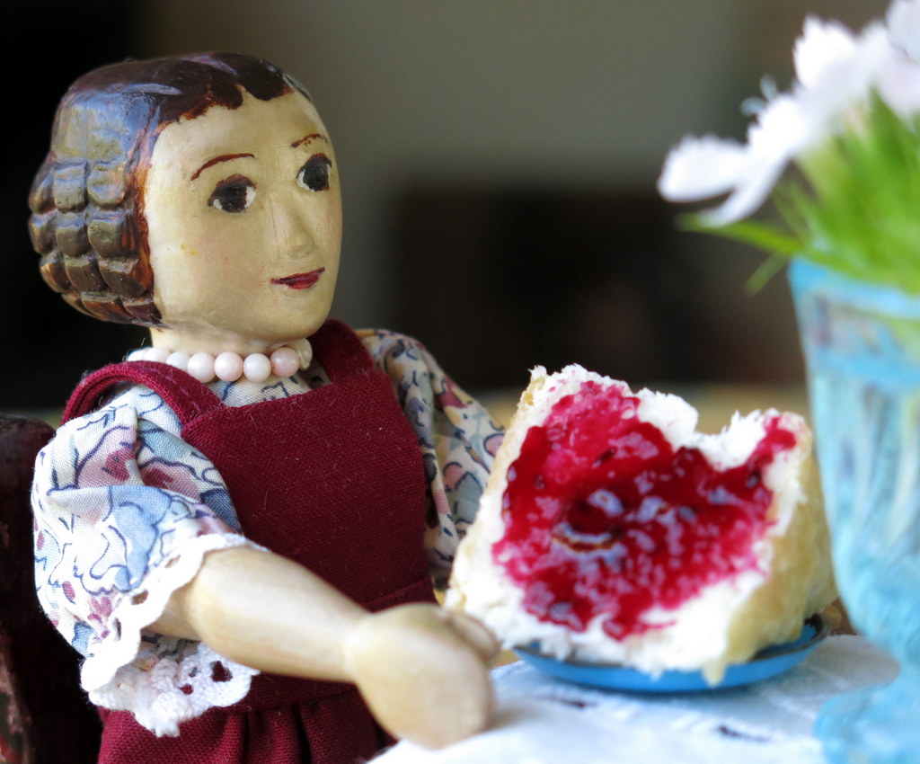…and adding butter and fresh home made Black Currant jam.