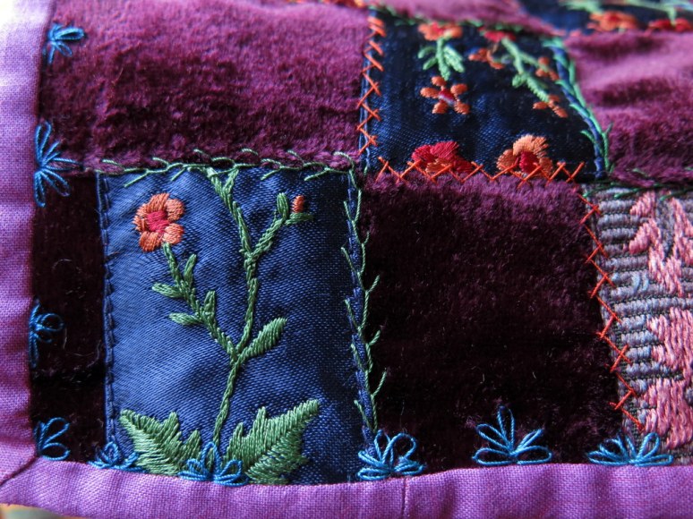 Thanks! The original waistcoat reminded me of the 19th century crazy quilts, and their fantastic embroidery. I couldn’t in a million years really reproduce that look, I was happy with the result on this little quilt, like an echo.