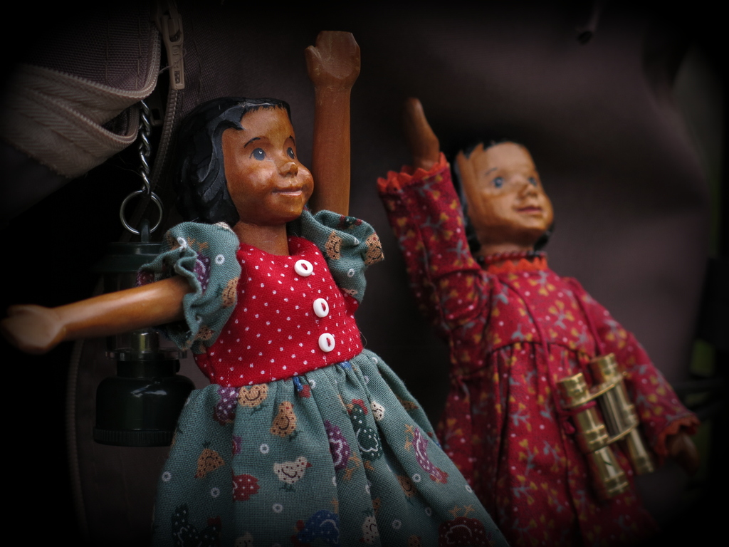 • The twins love back yard camping, and we were very lucky to get this shop floor sample at the end of the summer one year – it is perfect Hitty sized! The chicken dress was given to me by a mutual carving friend, we love it too, and I love how down-to-earth you are !
