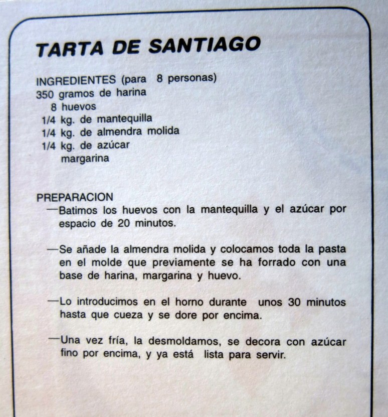 We also collected a postcard with a recipe for Tarta de Santiago…